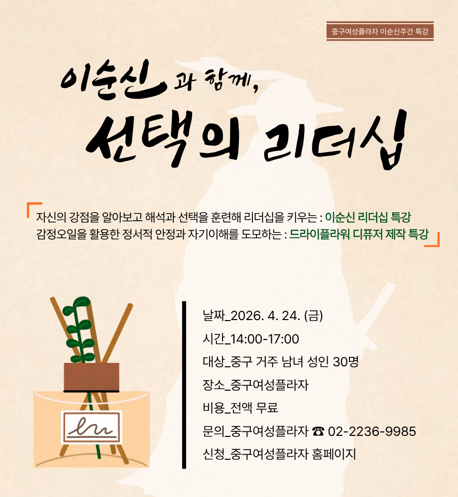 [이순신week 무료특강]이순신과 함께 선택의 리더십 & 감정오일을 활용한 자기이..
