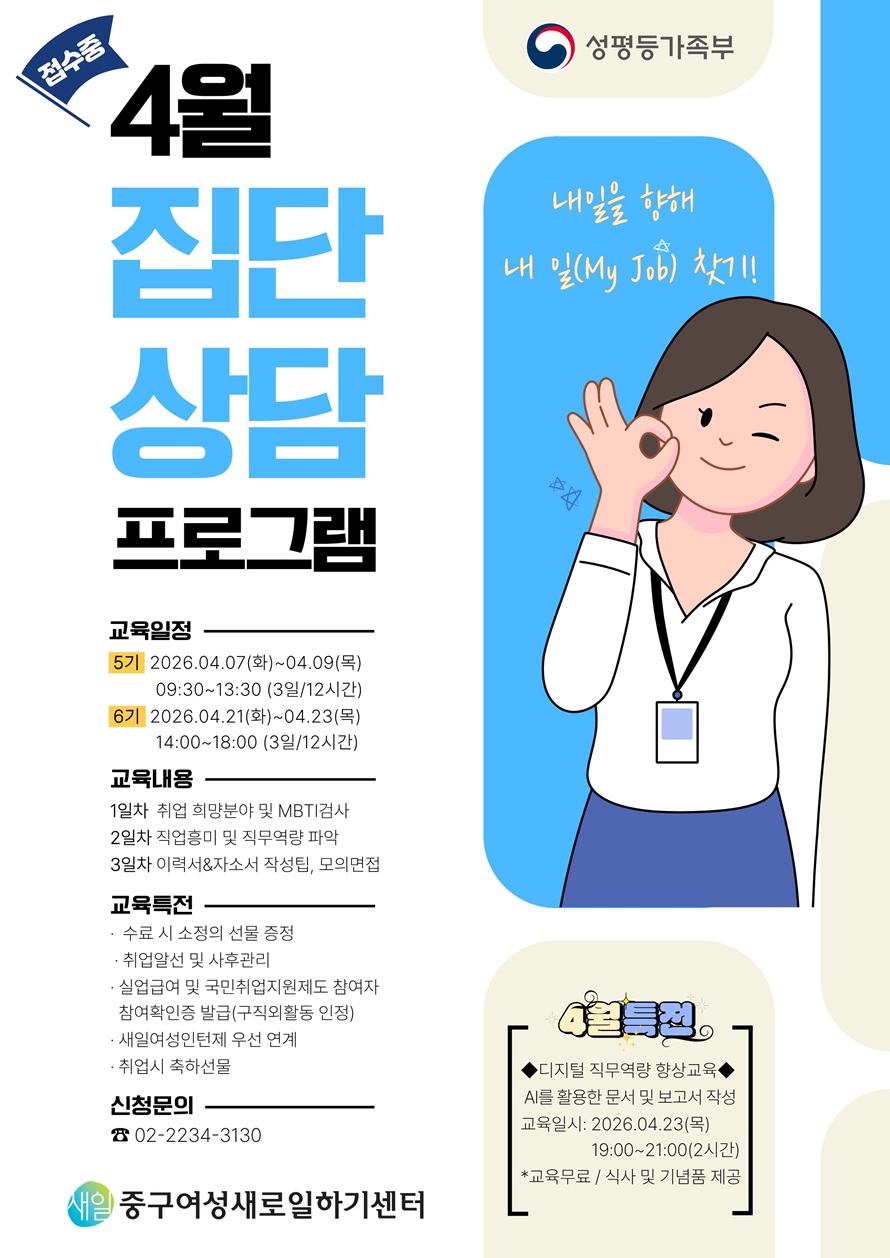[국비지원] 2026 취업대비교육 집단상담 프로그램 4월 참여자 모집 (교육비 무료)