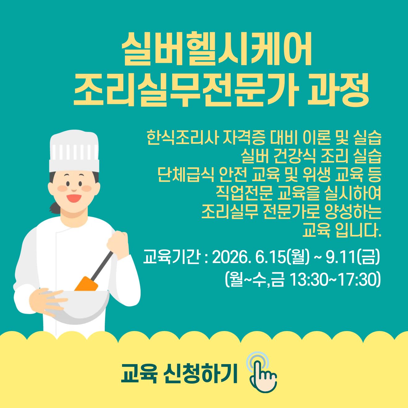 구인 수요가 높은 취업 직종에 대한 직업교육 훈련과정 운영을 통해 경력단절여성의 취업 역량을 강화하고 지역사회 및 산업체 요구에 적합한 여성 인력을 양성하는 교육입니다.