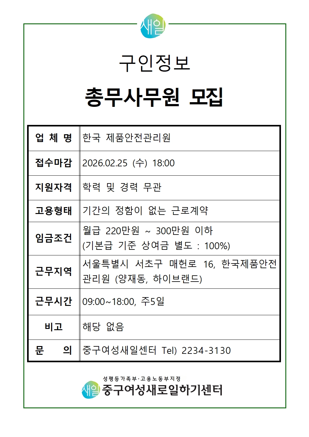 총무 사무원 모집