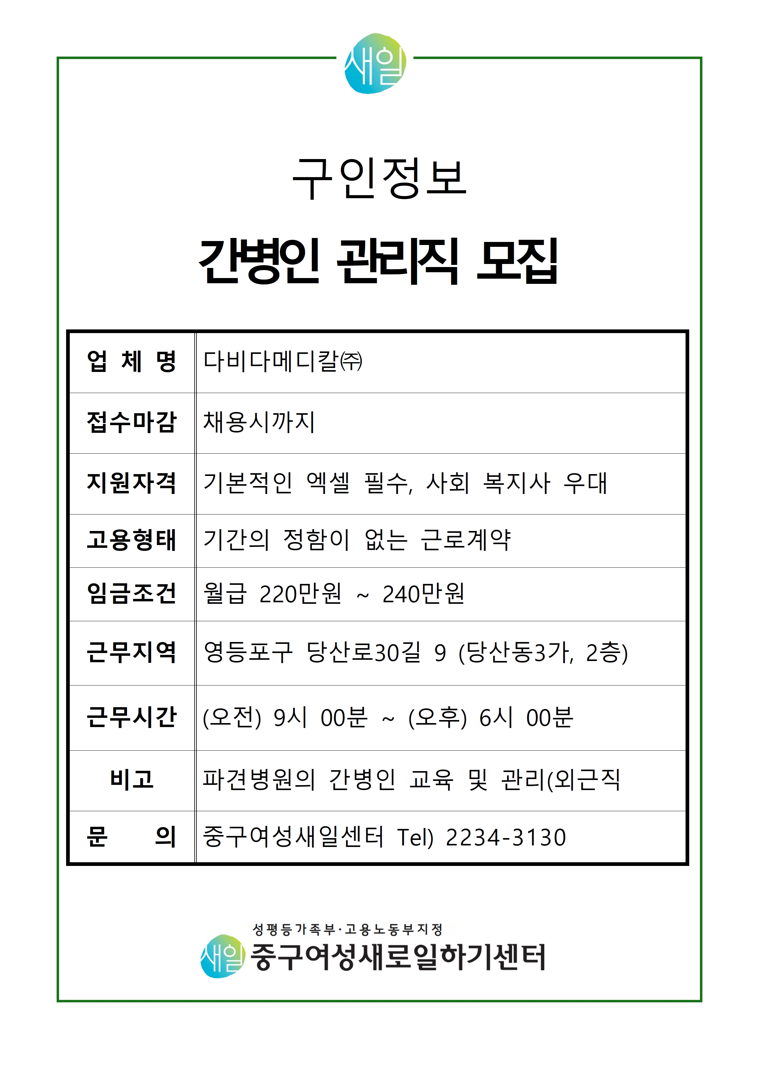 [다비다메디칼㈜] 간병인 관리직