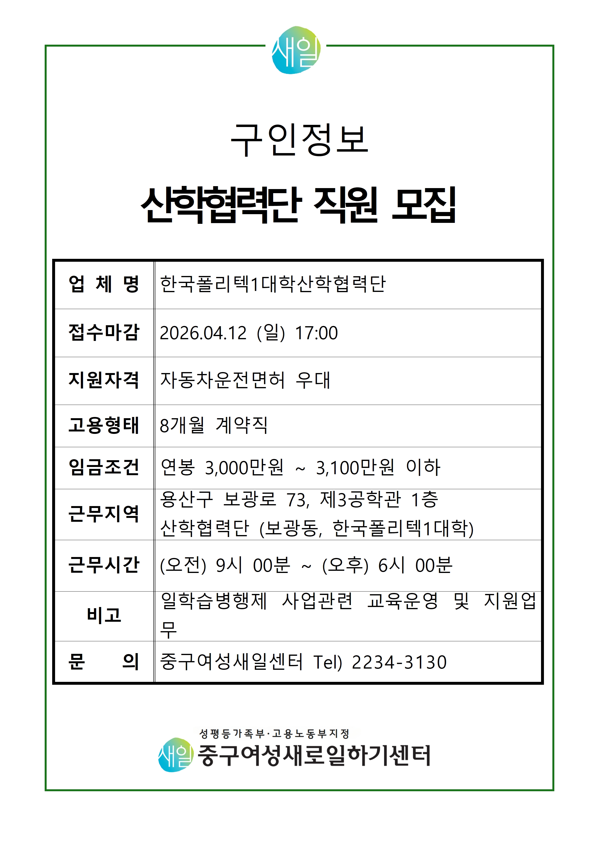 [한국폴리텍1대학산학협력단] 산학협력단 직원