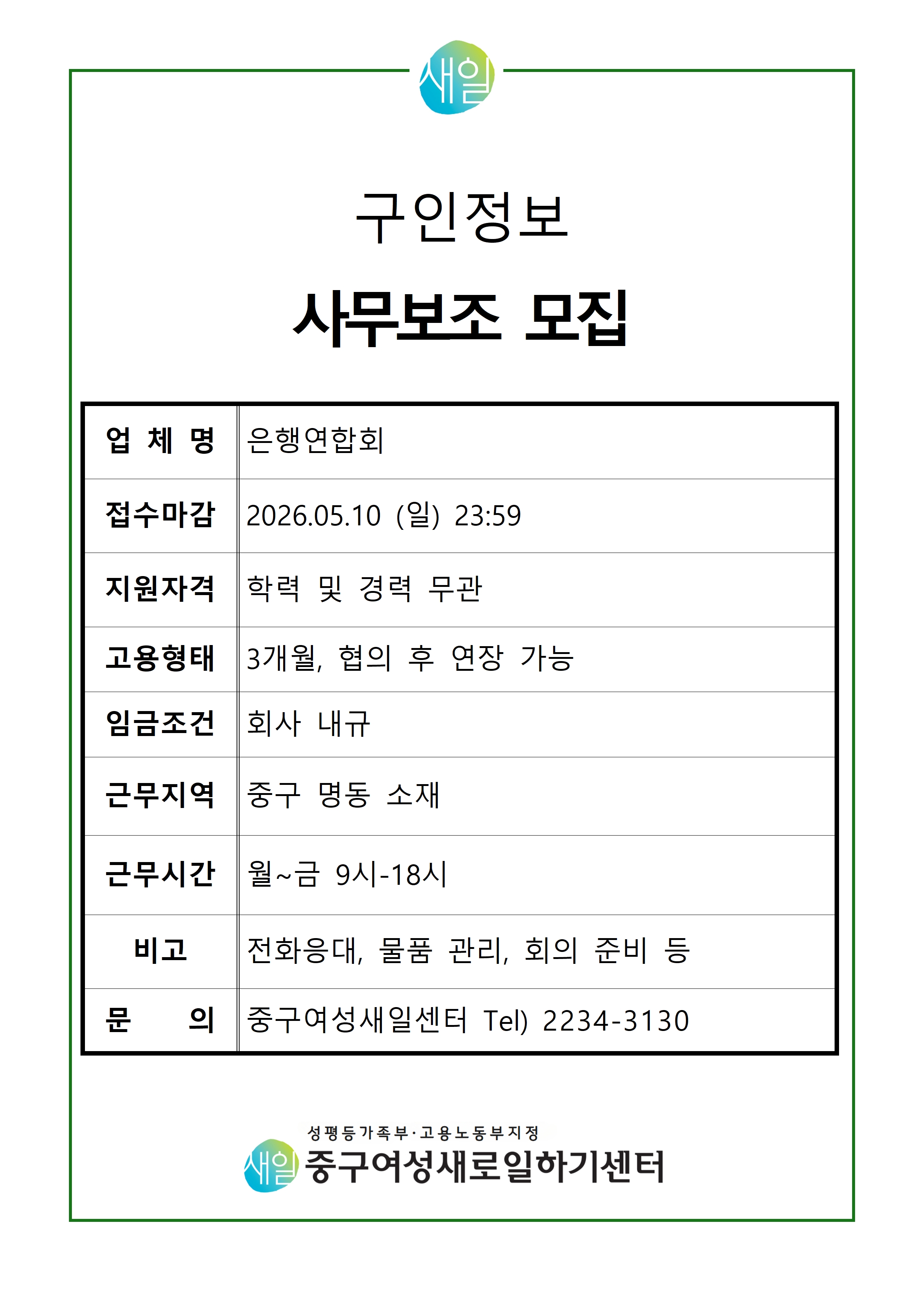 [은행연합회] 사무보조